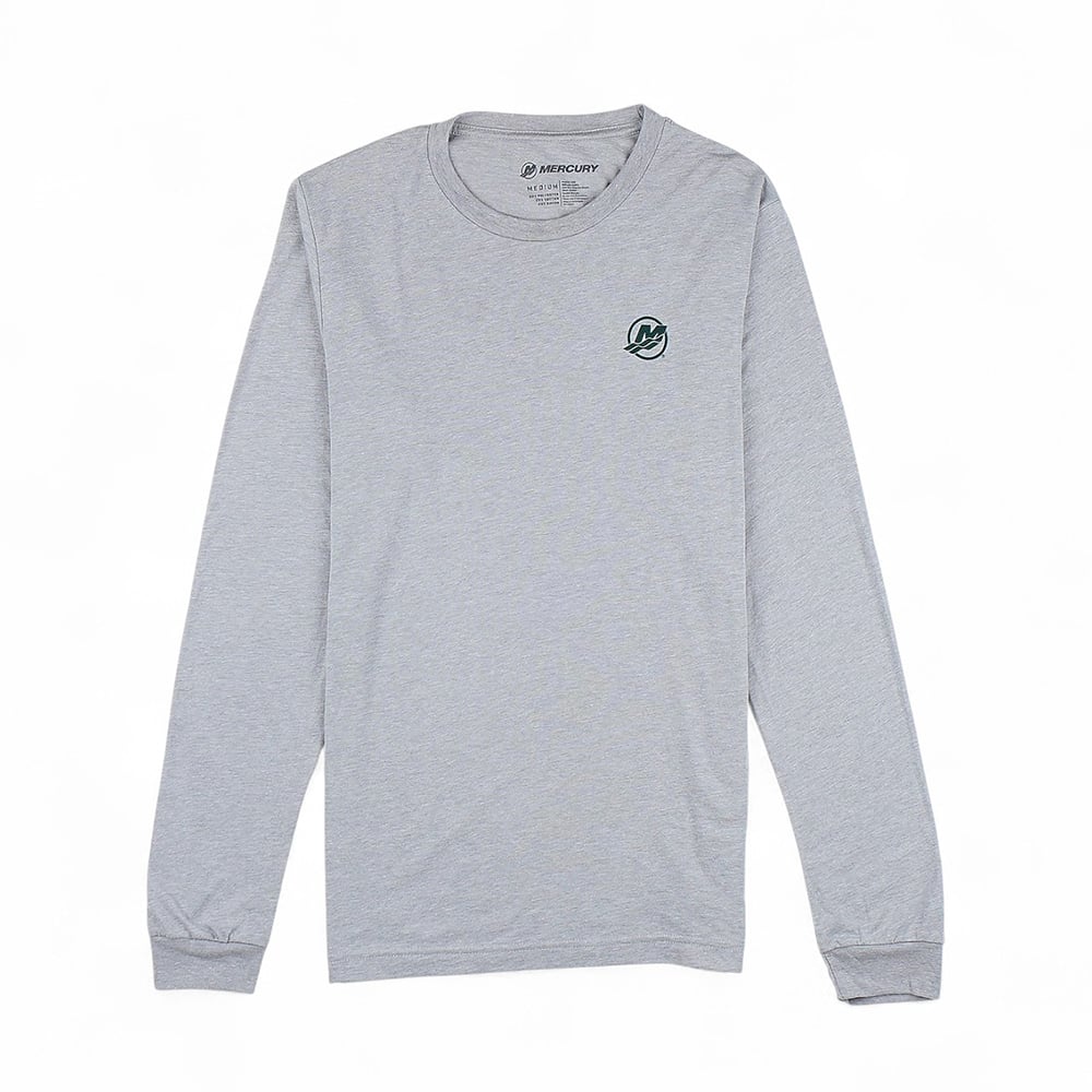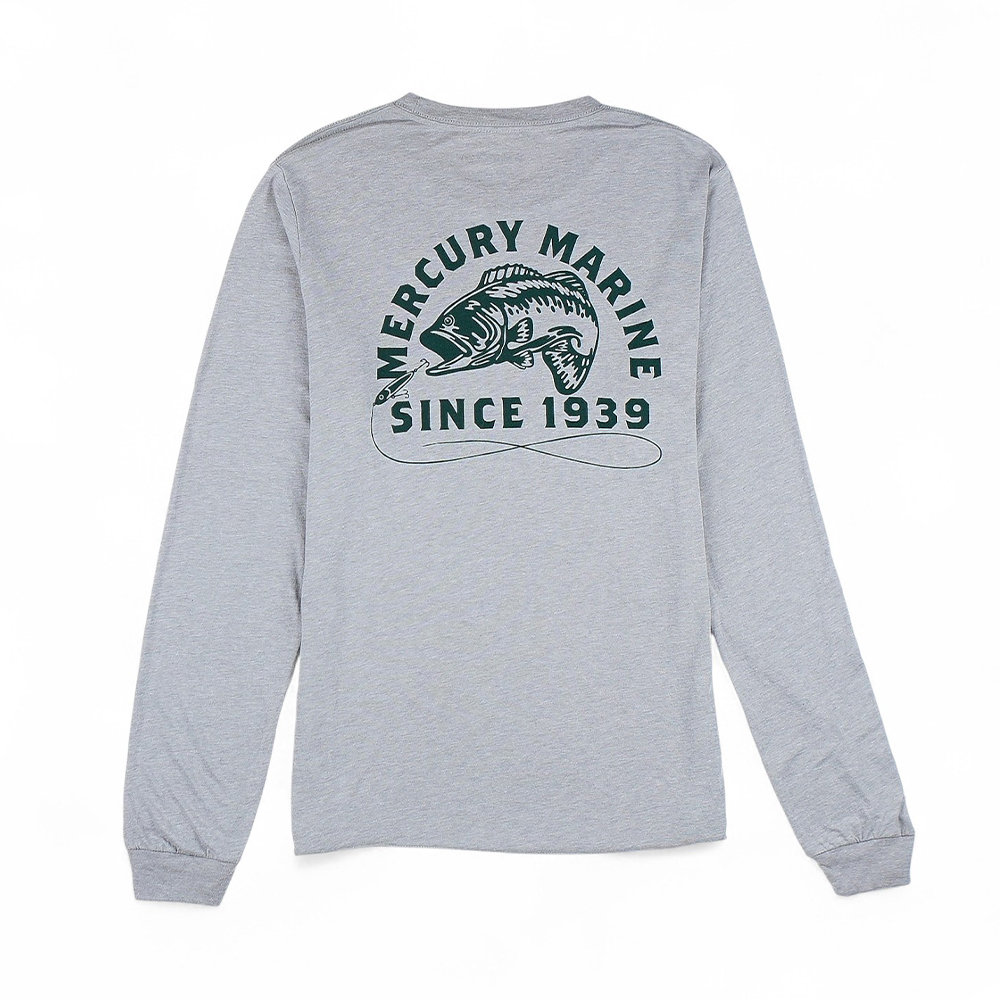 The Mercury Marine Outfitter Long Sleeve is built for comfort and everyday wear. Crafted from a soft cotton-poly blend, this unisex jersey shirt features a classic crew neck, ribbed cuffs, and a modern retail fit. The front is finished with a subtle Mercury logo on the chest, while the back showcases a bold fishing graphic with “Mercury Marine Since 1939.” Perfect for layering or wearing on its own, this long sleeve tee combines heritage style with lightweight comfort.