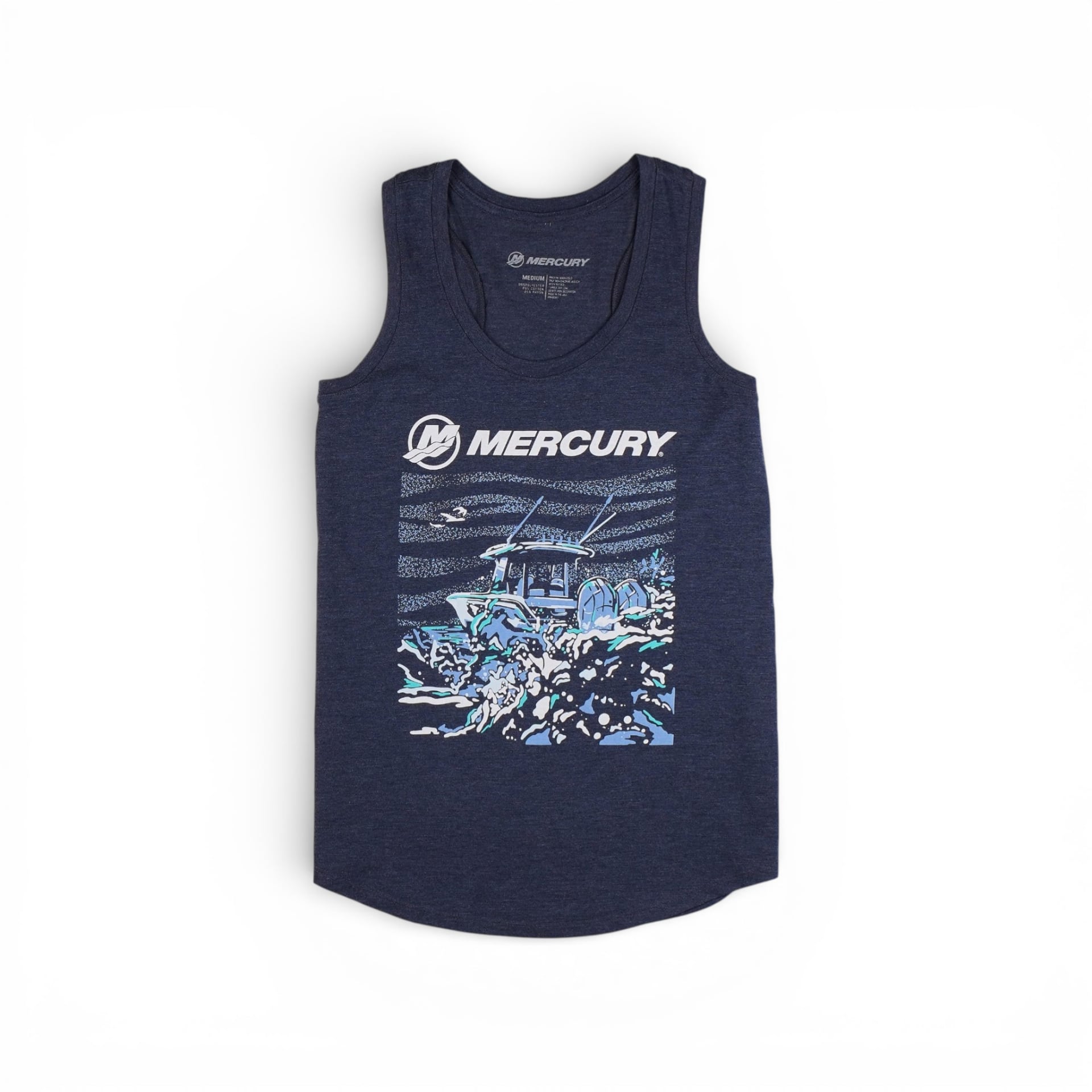 This tank is crafted from a soft blend of 50% polyester, 25% combed ring-spun cotton, and 25% rayon, giving you that soft, breathable feel you’ll love. Full front graphic showcasing the power of Mercury.