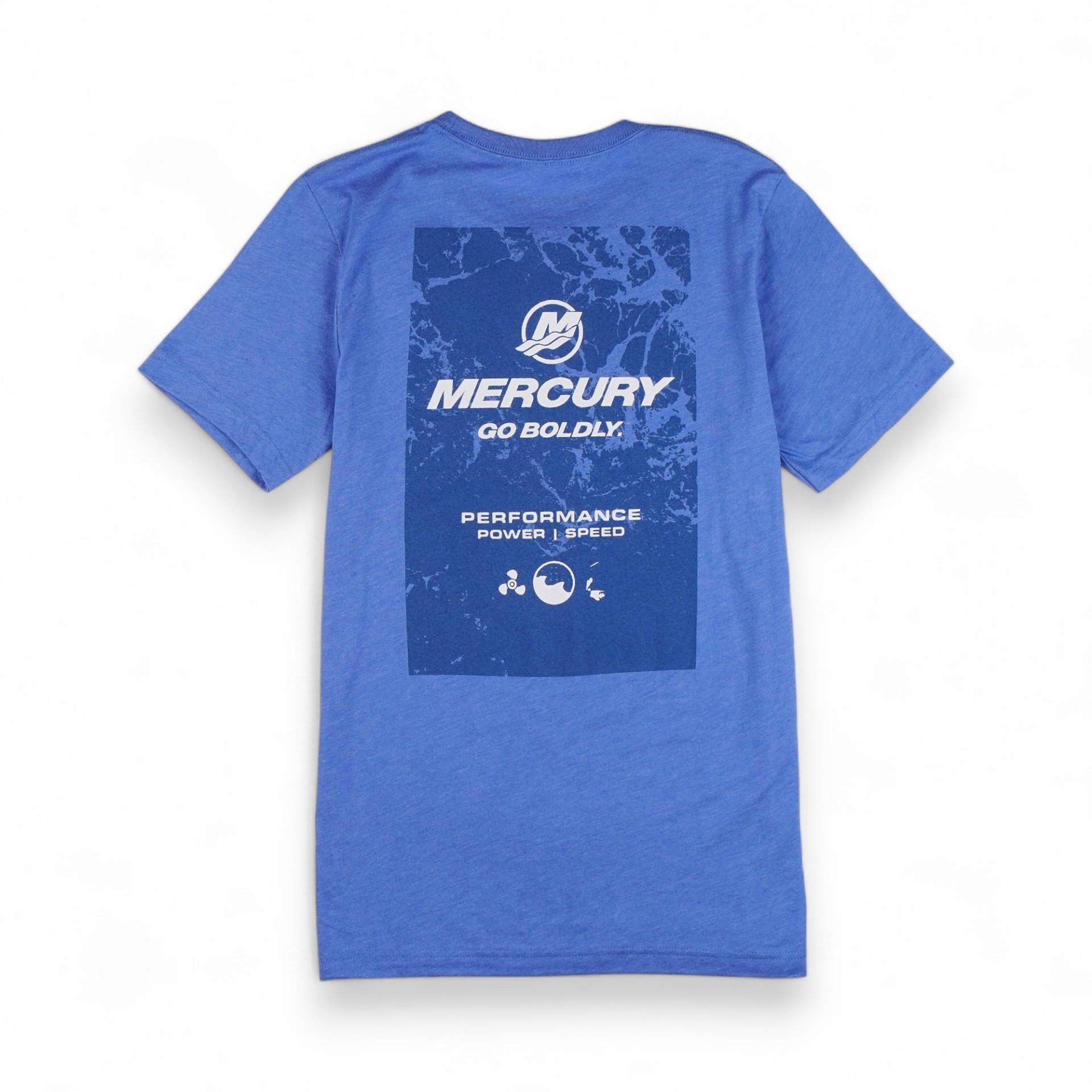 Mercury Heather Carolina Blue Tee is an excellent choice. Blue watercolor graphic on the back with the Mercury logo on the left chest.