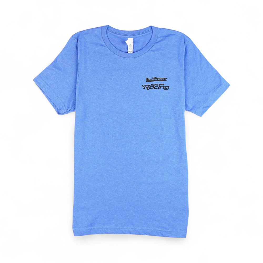 Turn up the adrenaline with the Mercury Racing Throttle Tee. Designed in a vibrant blue with bold racing-inspired graphics, this shirt celebrates Mercury’s legacy of power and performance. The front features a clean Mercury Racing logo, while the back showcases a dynamic high-performance boat graphic with the phrase “Powering Champions”. Built from a soft cotton-poly blend, this tee delivers comfort and durability whether you’re trackside, dockside, or just living the racing lifestyle.