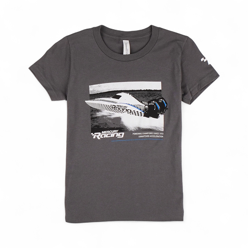 Built for young racers who live wide open, the Mercury Racing WOT Youth Tee combines comfort, durability, and bold style. Featuring a striking Mercury Racing powerboat graphic, it’s the perfect shirt for kids who want to show off their racing pride.